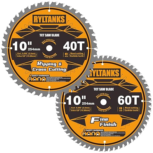 Upgrade your woodworking projects with the 10 Inch Table Saw Blade/Miter Saw Blade 2-pack from Ryltanks. Designed to provide clean and precise cuts, this pair is an excellent addition to any workshop. Both blades deliver reliable performance on a variety of materials, ensuring versatility and durability.