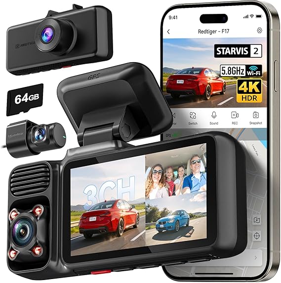 3. REDTIGER F17 4K 3 Channel Dash Cam, STARVIS 2 IMX675