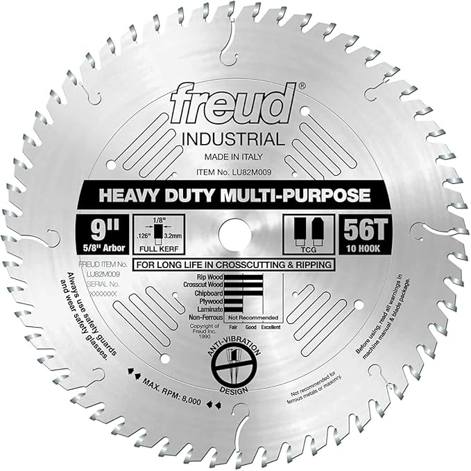 9. Freud LU82M009: 9″ x 56T Heavy Duty Multi-Purpose Blade