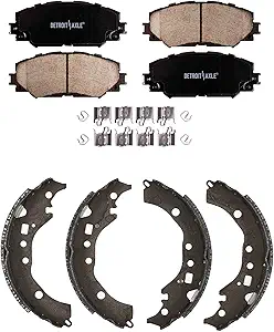The Detroit Axle Brake Pads and Brake Shoes set delivers dependable stopping power designed for 2009-2019 Toyota models and compatible Scion xD vehicles. Crafted to meet and exceed original equipment standards, this kit ensures a seamless fit with excellent durability.