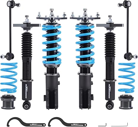 Maintaining these coilovers typically involves checking for any signs of wear or corrosion on a regular basis and ensuring that the adjustable components remain lubricated and free of debris. Regularly inspecting the mounting points and keeping an eye on the damping settings will help prolong the coilovers’ performance and lifespan.