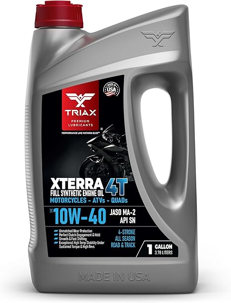 Offering excellent protection and smooth operation, the TRIAX XTerra 4T 10W-40 stands out as a dependable choice for maintaining the health of stick-shift motorcycles. Its robust synthetic formula supports long engine life and reliable clutch performance, making it a strong contender among synthetic and conventional oils.