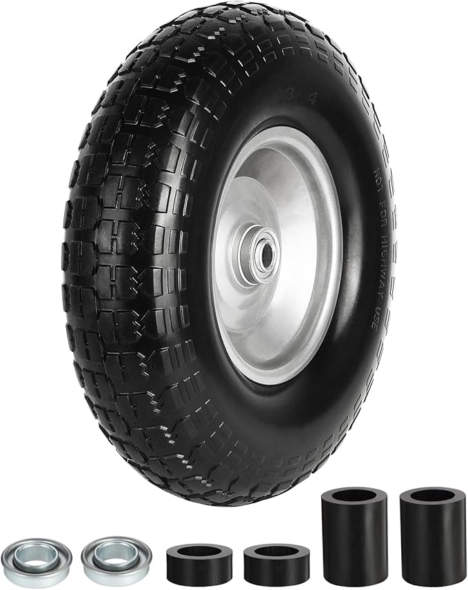 Ideal for commercial or home use, these tires serve wheelbarrows, yard trailers, generators, and more. They eliminate the need for inflation and reduce downtime caused by flats. Overall, they combine quality materials, dependable performance, and wide compatibility into a cost-effective wheel replacement solution.
